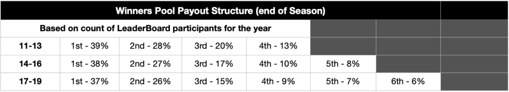 | Position | Name | LeaderBoard Points Total | Points from Wins | Points from Cashes | Points from Participation |